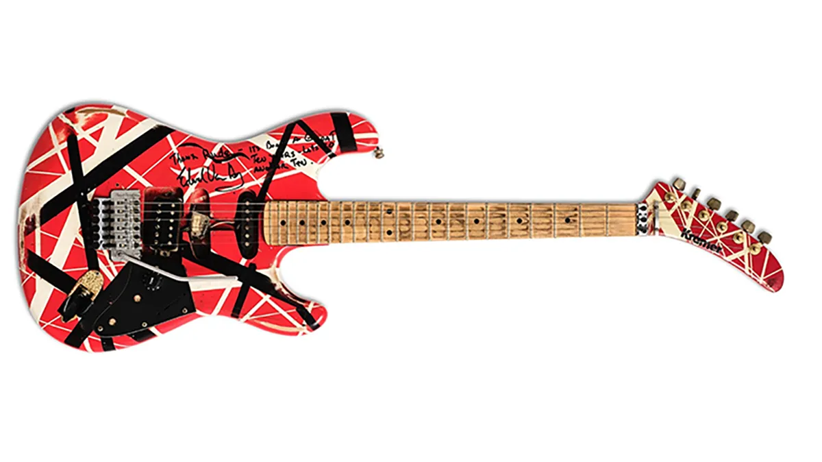 The provenance also includes an inscription from Van Halen to his guitar tech, Rudy Leiren: “Rude – it’s been a great ten years – let’s do another ten. Eddie Van Halen”. After Van Halen gifted the guitar to Leiren, it passed to Mötley Crüe’s Mick Mars, who later used it in the recording of Dr. Feelgood.