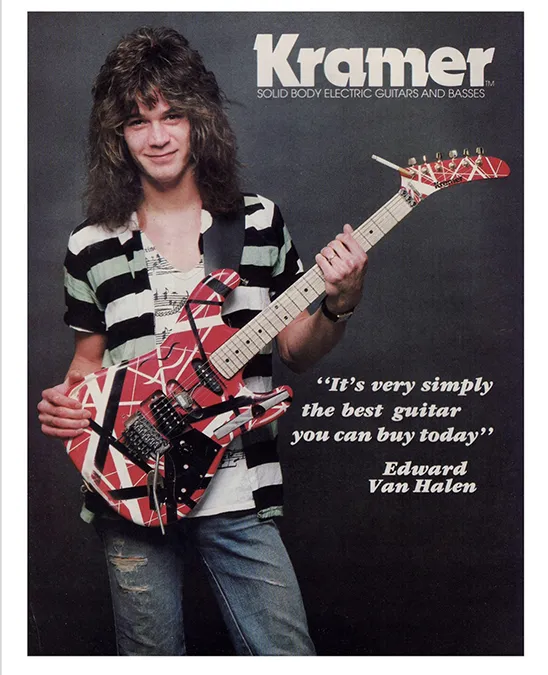 The origin of this instrument lies at a key moment in rock history. When Van Halen partnered with Kramer, the result was a shift in the guitar industry – Kramer briefly became the best-selling electric guitar brand in the mid ’80s, driven by Van Halen’s endorsement and guitar design involvement. Gill remarks: “What Les Paul was for Gibson, Edward Van Halen is for Kramer.”